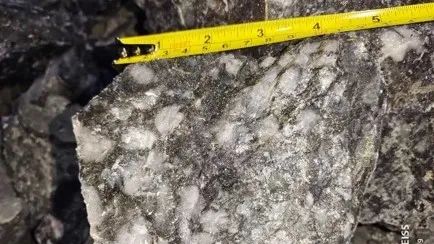 1050中段17線控制的VCR礦體 1050中段17線探獲礦體的代表性礦石