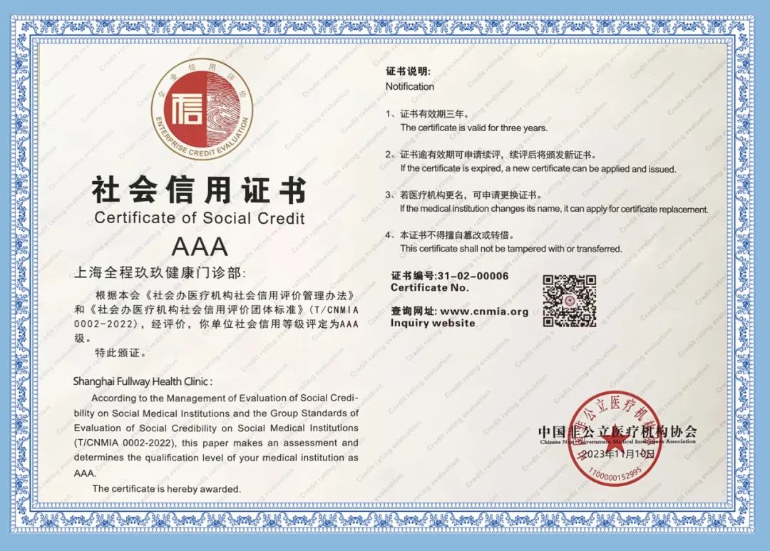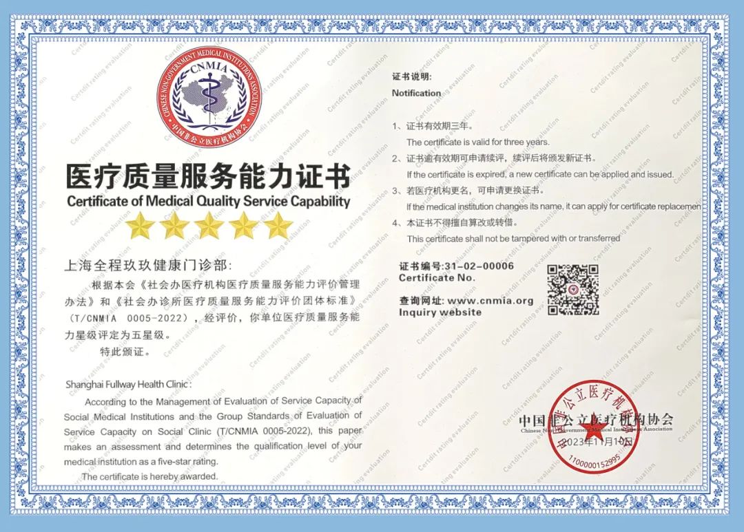 近期,上海鵬欣集團旗下上海全程玖玖健康門診部接受了中國非公醫(yī)療機構(gòu)協(xié)會評價專家組的信用與能力的續(xù)評考核,收獲了一致認可!喜獲中國非公立醫(yī)療機構(gòu)協(xié)會“社會信用評價AAA級機構(gòu)”及“醫(yī)療質(zhì)量服務(wù)能力五星級醫(yī)療機構(gòu)”兩項殊榮!